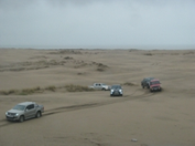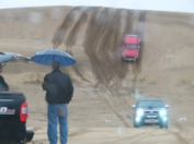 Llegó el momento de desinflar cubiertas, antes de empezar nuestra aventura. La lluvia facilitó la conducción en la arena, lo que hizo que todos los participantes, algunos novatos, se desenvolvieran sin dificultad.
