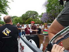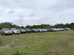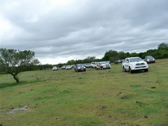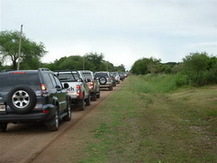 Salimos en caravana hacia el predio, después que se entregaron los handies, y las provisiones para la mañana.
