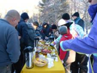 Decidimos volver para disfrutar de un brindis de despedida en la nieve.