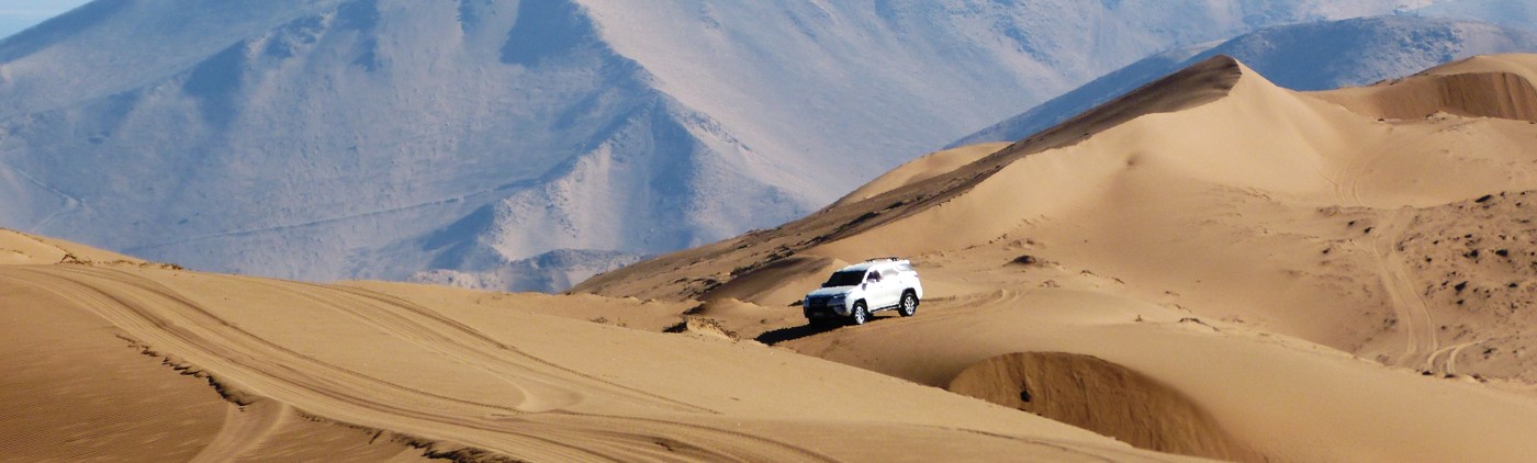 Después del desayuno, saldremos hacia las dunas, a 20 km de Copiapó. Las dunas son de una arena totalmente distinta, con largas pendientes que nos llevaran a descubrir un sinfín de relieves con alturas y formas diferentes, que hacen el paisaje bellísimo y exótico. Tendremos dos circuitos diferentes cada día con toda la adrenalina del 4x4.